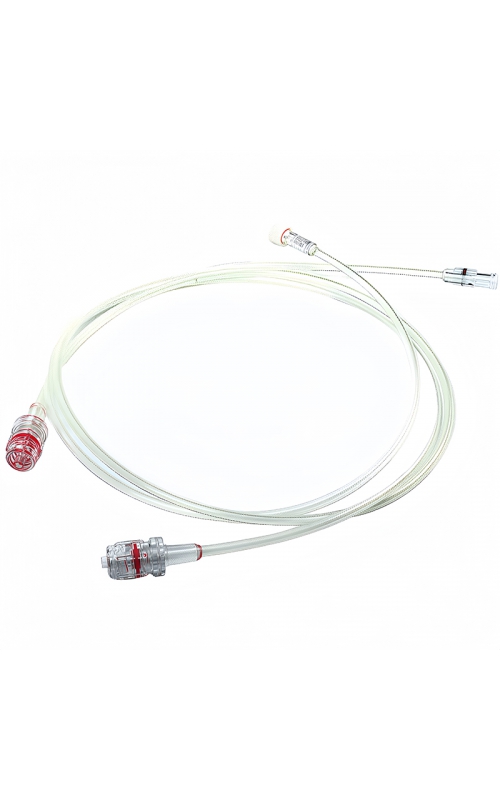 Kink-resistant design ensures high-pressure fluid delivery, crafted from biocompatible materials for safety, featuring a braided structure and luer-lock connectors for secure attachment.